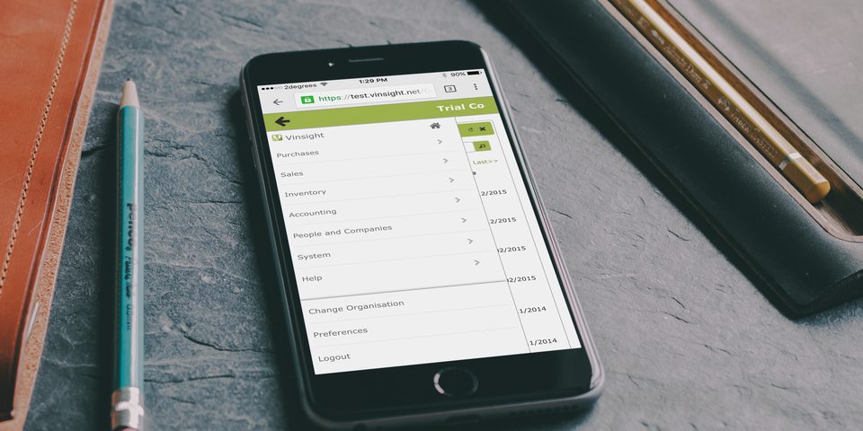 You may have noticed some changes to the menus when accessing Vinsight from a tablet or phone. We have a new ‘mobile’ menu which you can show or hide as you wish. The menu is initially hidden so it doesn’t overwhelm the screen space available. This makes it easier to access the substance of the App from a mobile device without having to scroll down to find it.